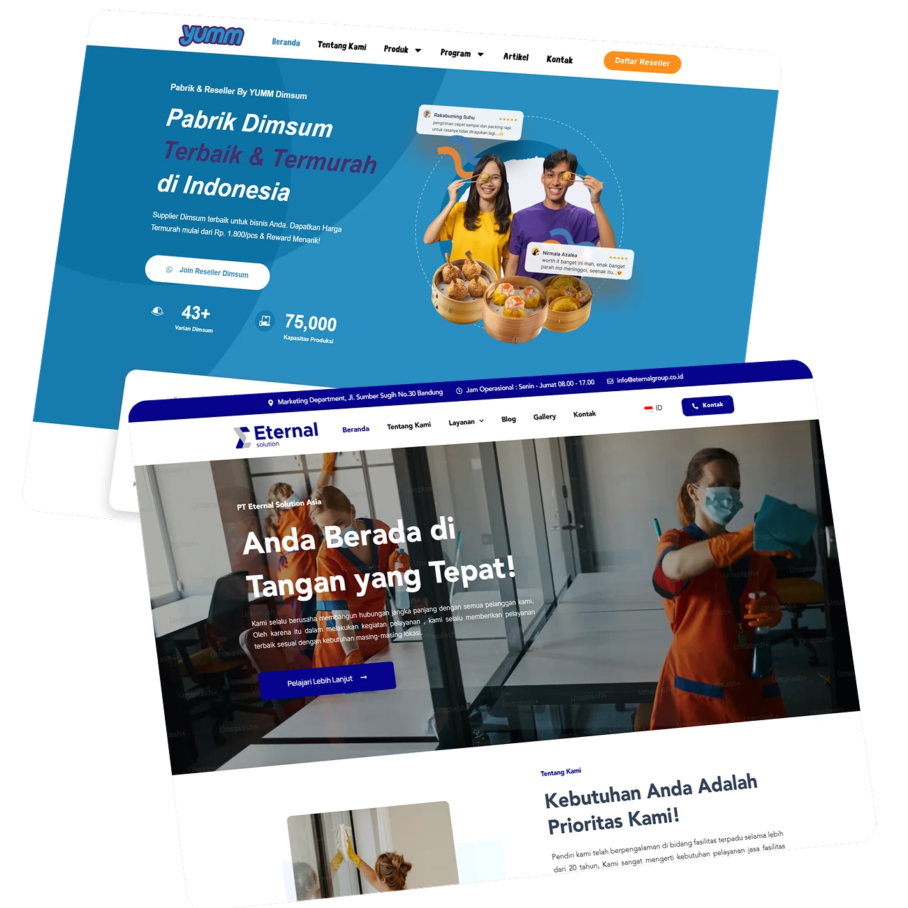 Dari company profile sampai integrasi fitur custom, semua bisa kami sesuaikan biar website kamu benar-benar merepresentasikan bisnis, dan mudah di temukan oleh klien potensial di mesin pencarian!
