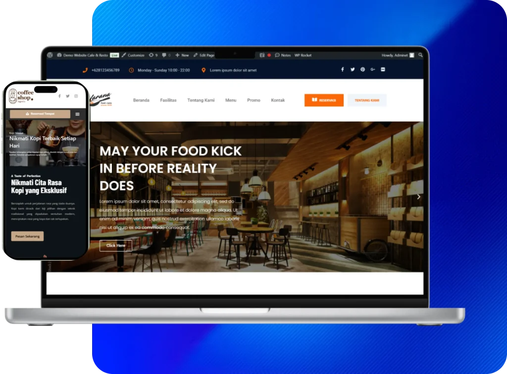 Jangan biarkan calon pelanggan kesulitan mencari restoran Anda! Dengan website yang menarik dan fungsional, Anda bisa menampilkan menu, menerima reservasi, dan meningkatkan visibilitas bisnis dengan lebih mudah.